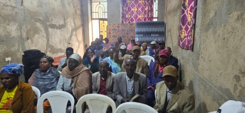 De foto's zijn gemaakt eind oktober 2025, toen Peter van Voorst op bezoek was in Boditi - Ethiopië. De vergadering vond plaats in de woonkamer.